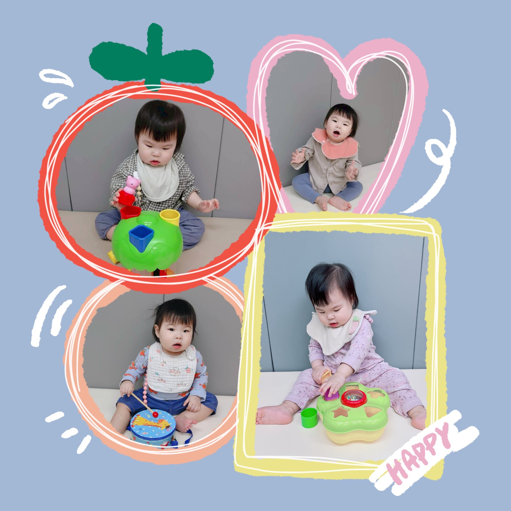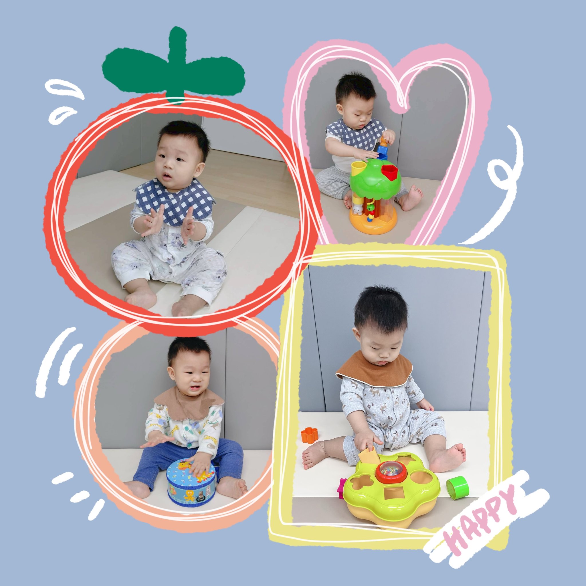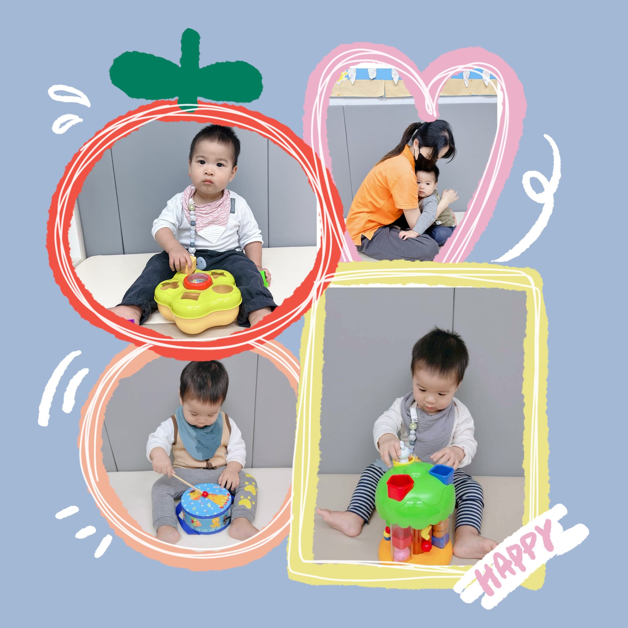Our little ones are gradually learning to use their logical thinking skills as they explore how to stack blocks, match shapes 🔴🟩🔺, clap their hands 👏, and tap on little drums 🥁.