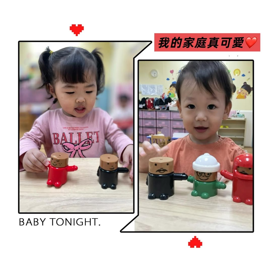 這不僅僅是積木遊戲,更是孩子們在用他們的方式,跟老師介紹:「這就是我們,這就是我的家,它真的很可愛!」🏠 👨 👩