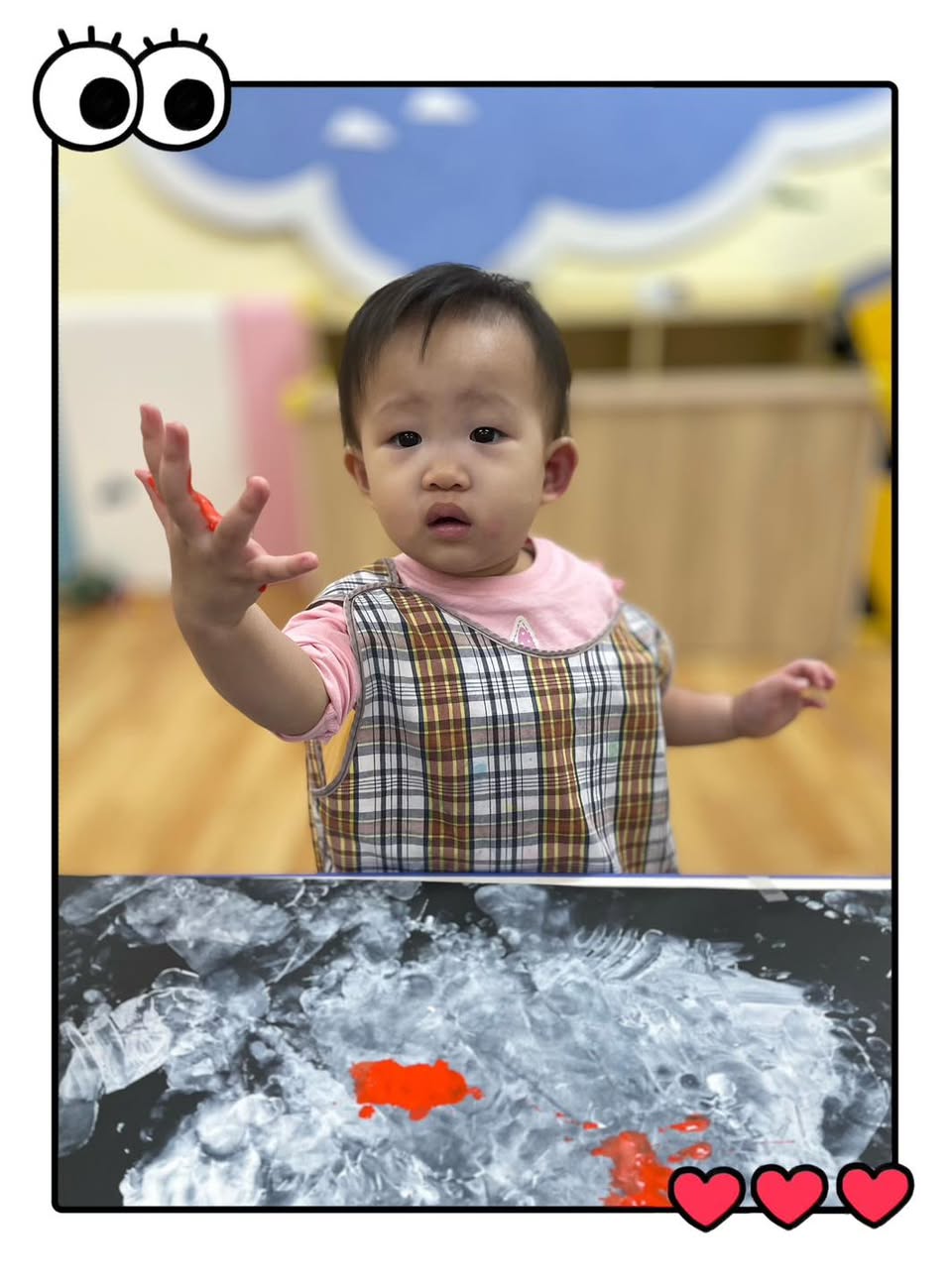 感官體驗超豐富-冰涼、黏稠的顏料、不同質地的「小毛球」,充分刺激孩子們的觸覺。