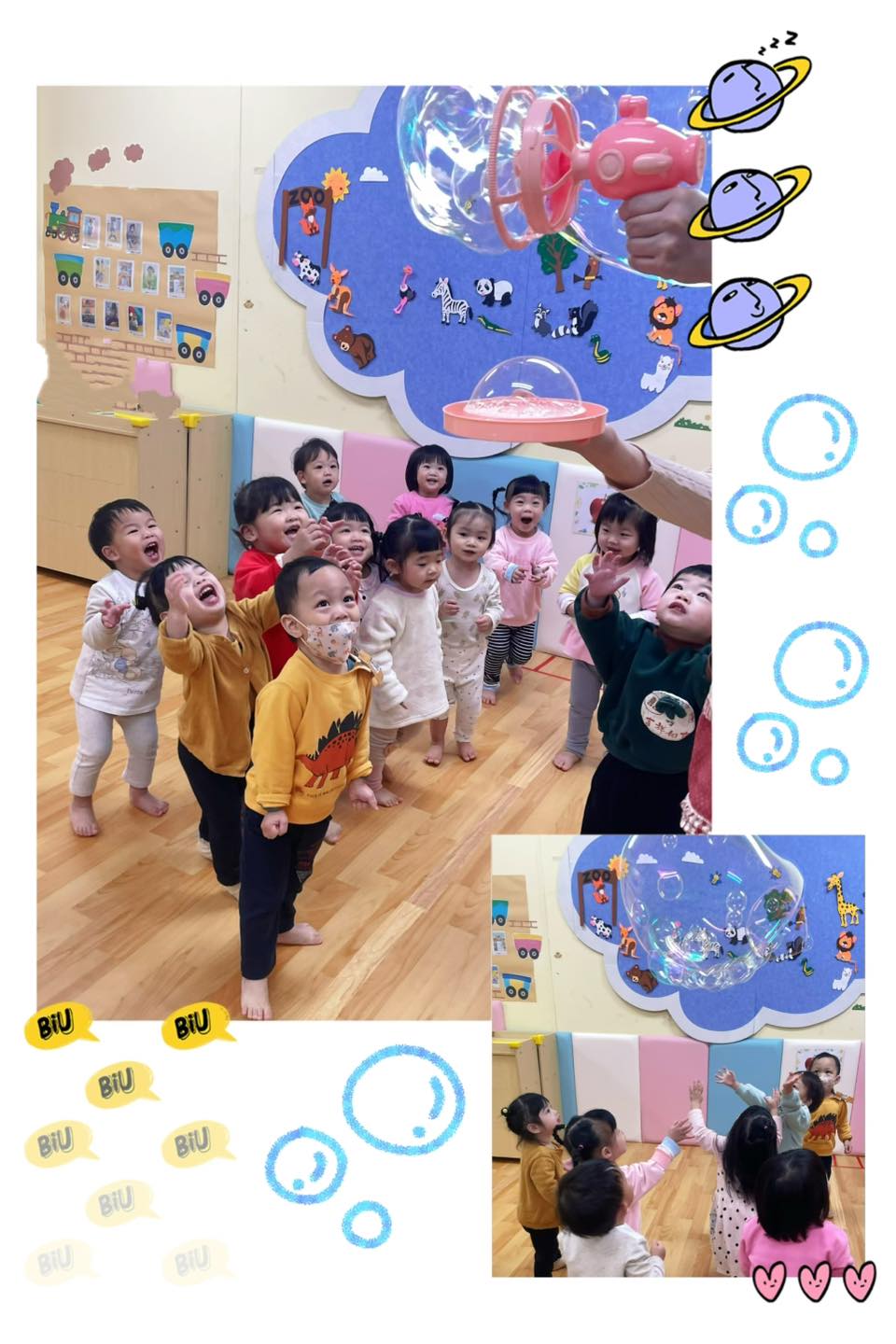 當泡泡飛舞,寶貝們全神貫注地伸出小手,想要捕捉這份純粹的快樂。看著大家眼神發亮的模樣,老師的心也跟著融化了。🥰