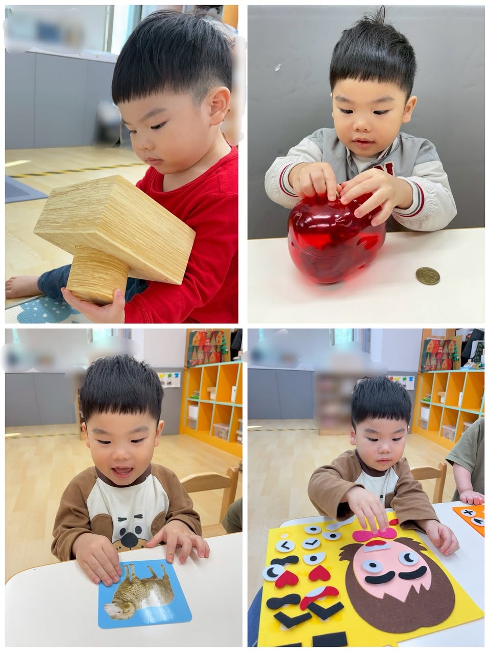 接著,寶貝們一起認識「五官」,透過黏貼活動創作出各種不同表情,發揮想像力與創意。之後,孩子們運用大積木蓋城堡🏰,除了自己動手堆疊,也會主動與同儕一起合作完成不同造型的城堡,過程中展現良好的互動與合作能力,看得出來大家的感情越來越好了!