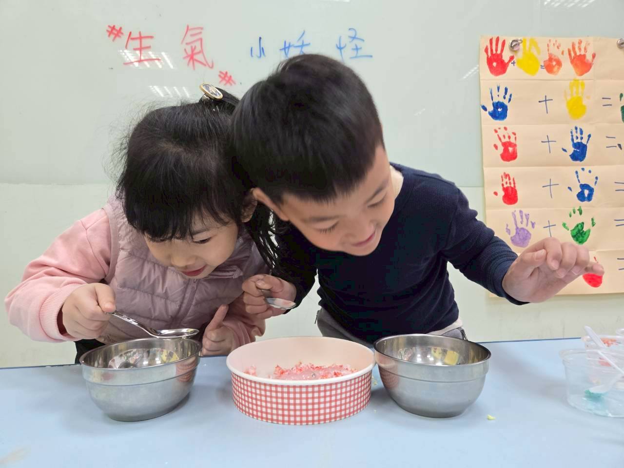 ❤️​魔法情緒實驗室: [顏色火山噴發] 利用小蘇打粉、食用色素與白醋,親手調配出情緒藥水。觀察各種顏色的變化,如:「憤怒」的紅泡泡如何瞬間沸騰,讓孩子直觀感受情緒的張力與抒發。