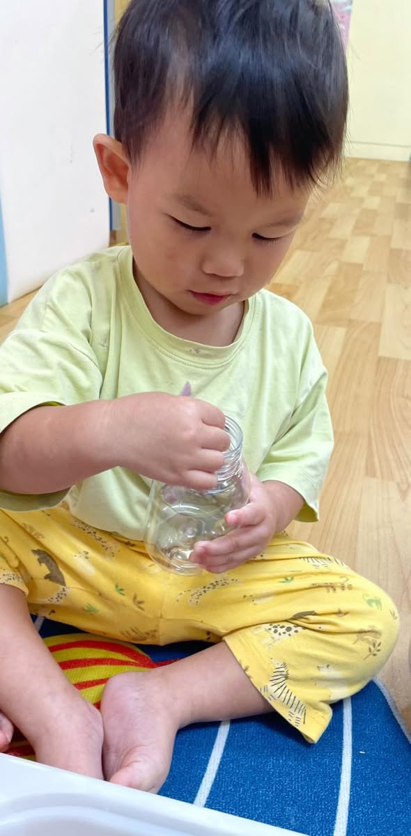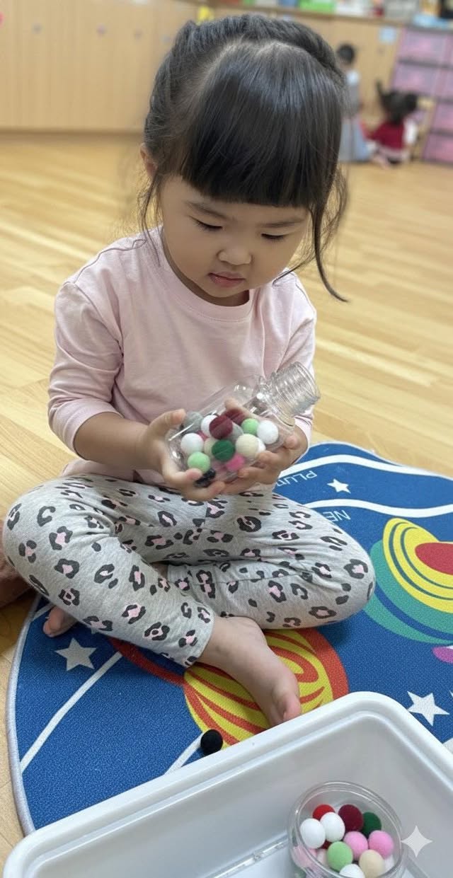 😁手眼協調-將小毛球精準地塞入瓶口。