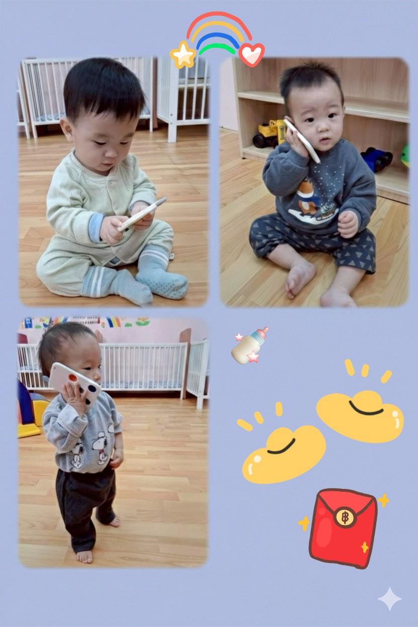 小小年紀講電話的姿勢就這麼專業,看來新的一年,我們家的好運跟可愛通通都滿格啦!📈❤️
