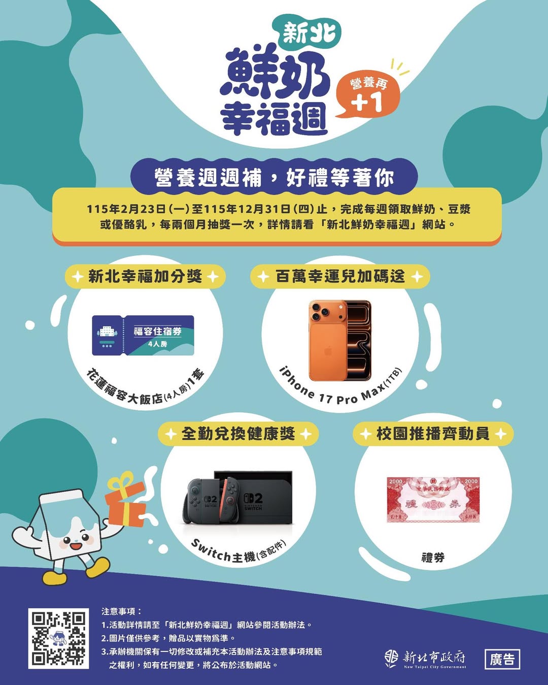 🥛新北鮮奶幸福週-喝鮮奶抽 iPhone 17、Switch!🥛